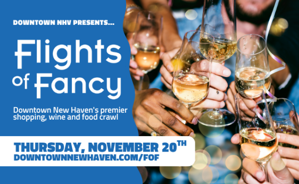 Downtown NHV presents New Haven’s premier shopping, wine and food crawl – Flights of Fancy! Calling all of CT’s fashionistas, amateur sommeliers, and foodies to kick off the holiday season, enjoying 20+ sipping, tasting and shopping stops, souvenir wine glasses and event bags, shopping discounts and promotions, raffle prizes, giveaways and more!